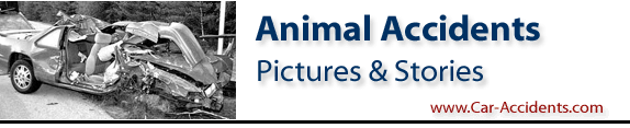 We have collected togther some animal car crashes. The most common crash involves deer, and we have a separate gallery of those crashes, Deer Accidents. Here we have crashes with horses, moose, dogs, birds and a cow. Be attentive, drive safe! Watch out! Please send us your animal collision accident story: Submit yours Here >>